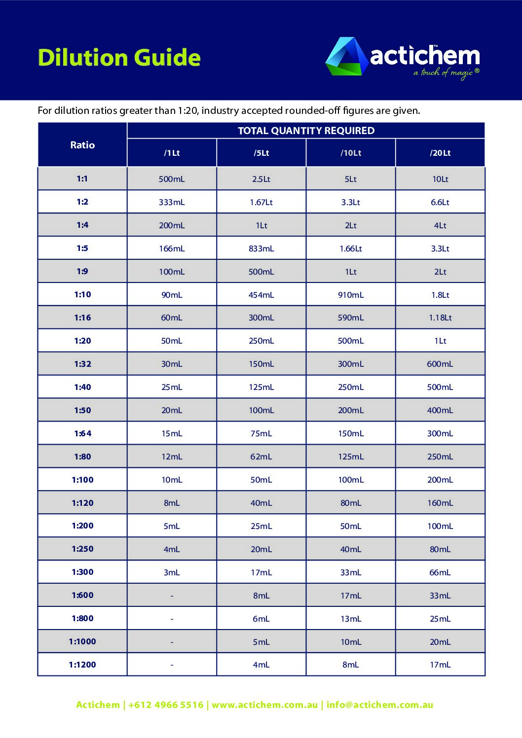 HydroForce Sprayer Dilution Guide