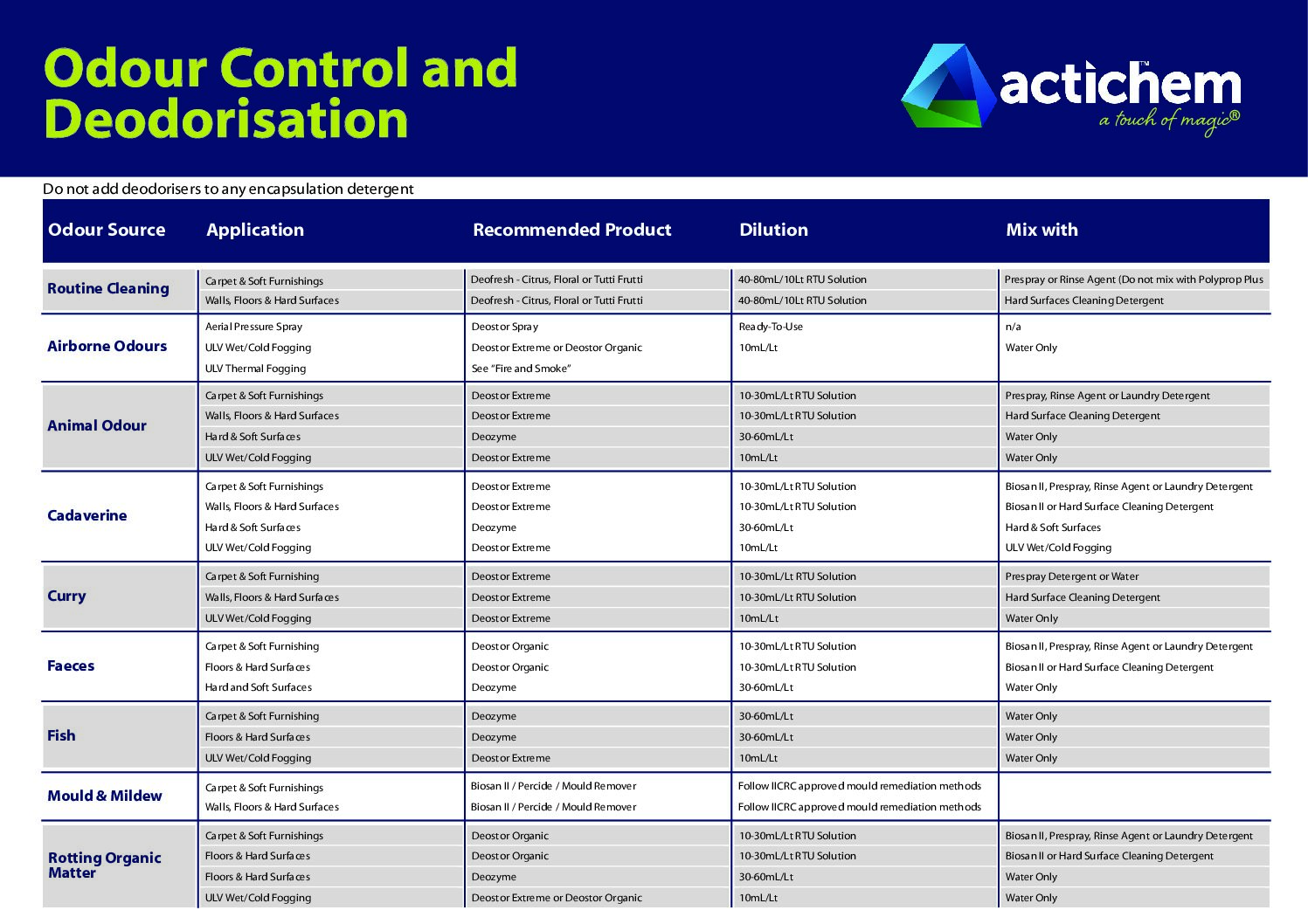 Odour Control Product Guide