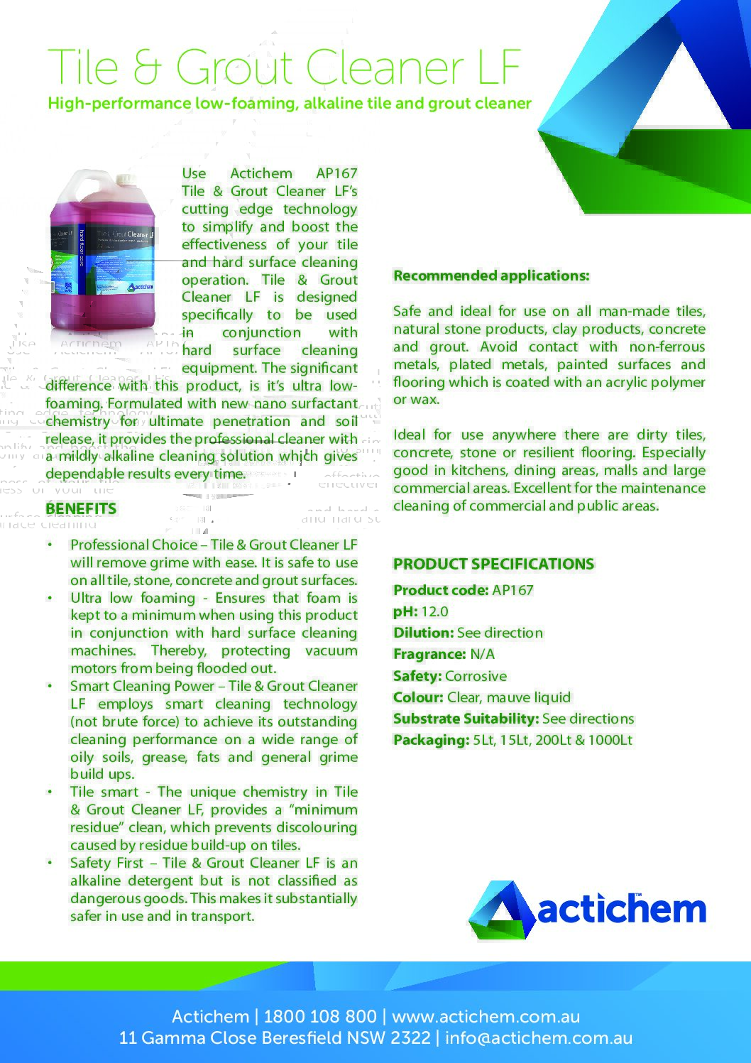 Tile & Grout Cleaner LF | Product Data Sheet