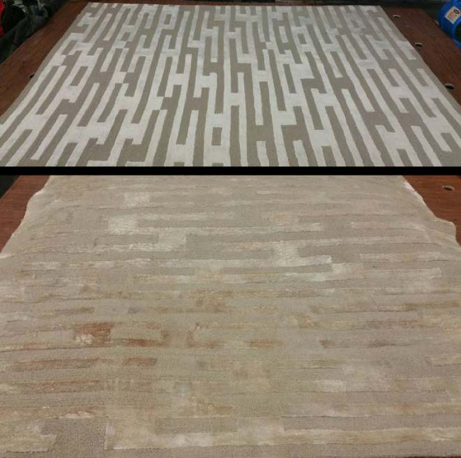 - Check for dye runs and colour loss (fading) – compare colour density across the back and front of rugs