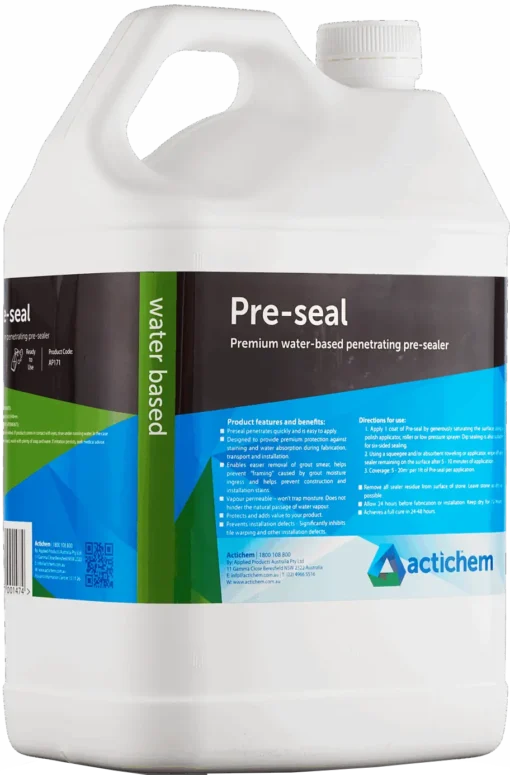 Preseal is formulated to dramatically inhibit the ingress of moisture into construction and fine stone, masonry and cement products during the installation process. Latest technology incorporated in this product ensures that the adhesive bond strength is not compromised whilst helping prevent tile warp and other installation defects.