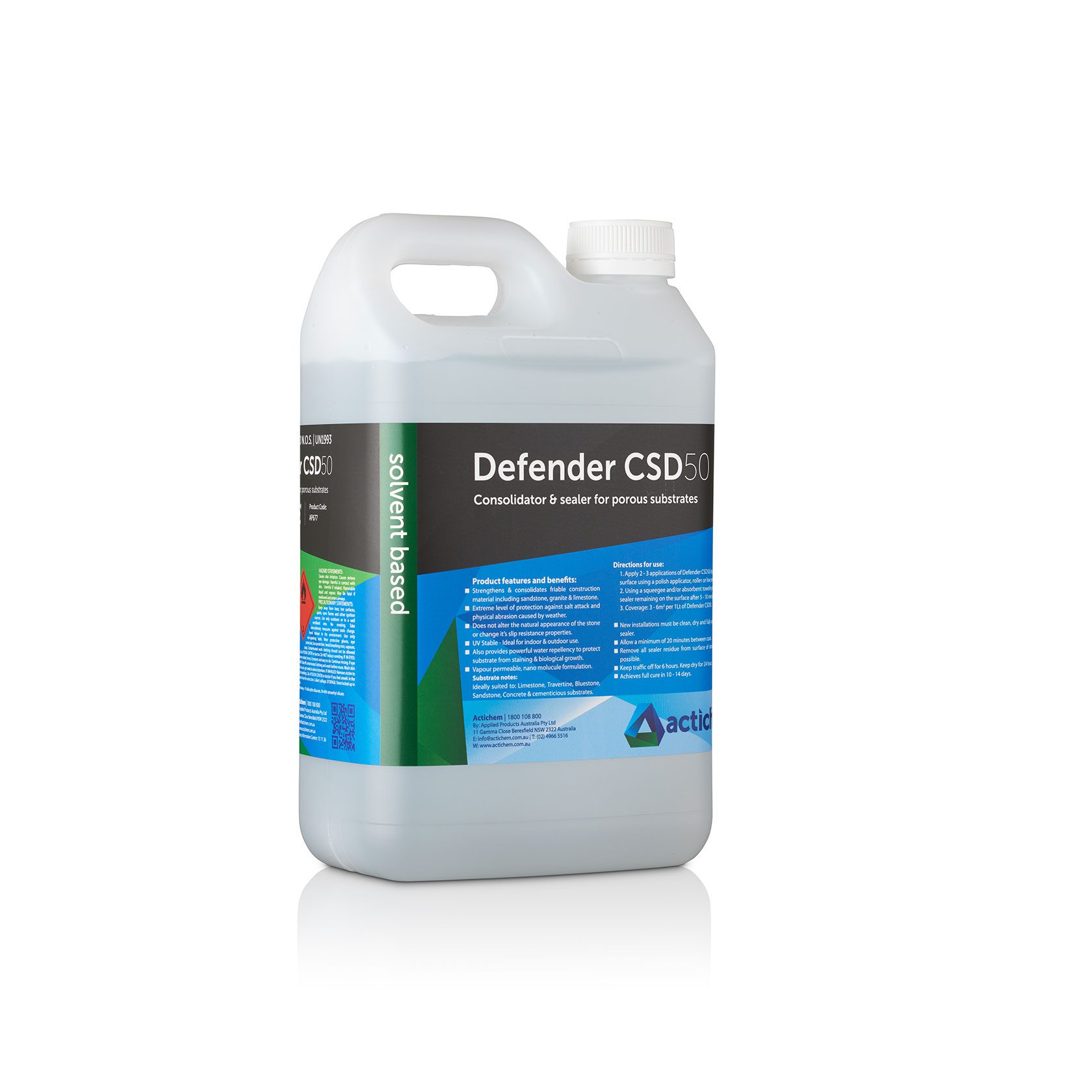 Defender CSD 50 is a dual-action consolidator and water repellent engineered to protect and strengthen porous stone and masonry. It penetrates deeply to bind and reinforce friable material while forming a long-lasting barrier against moisture, salts, and biological contaminants. Although suited to a wide range of materials it is most popular with construction materials such as sandstone, limestone, clay and concrete.