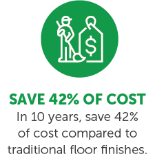 Sheens can be maintained from low satin to glossy. The product is available in Lower Satin Sheen and Satin Sheen. The Satin Sheen is burnishable for a gloss appearance.