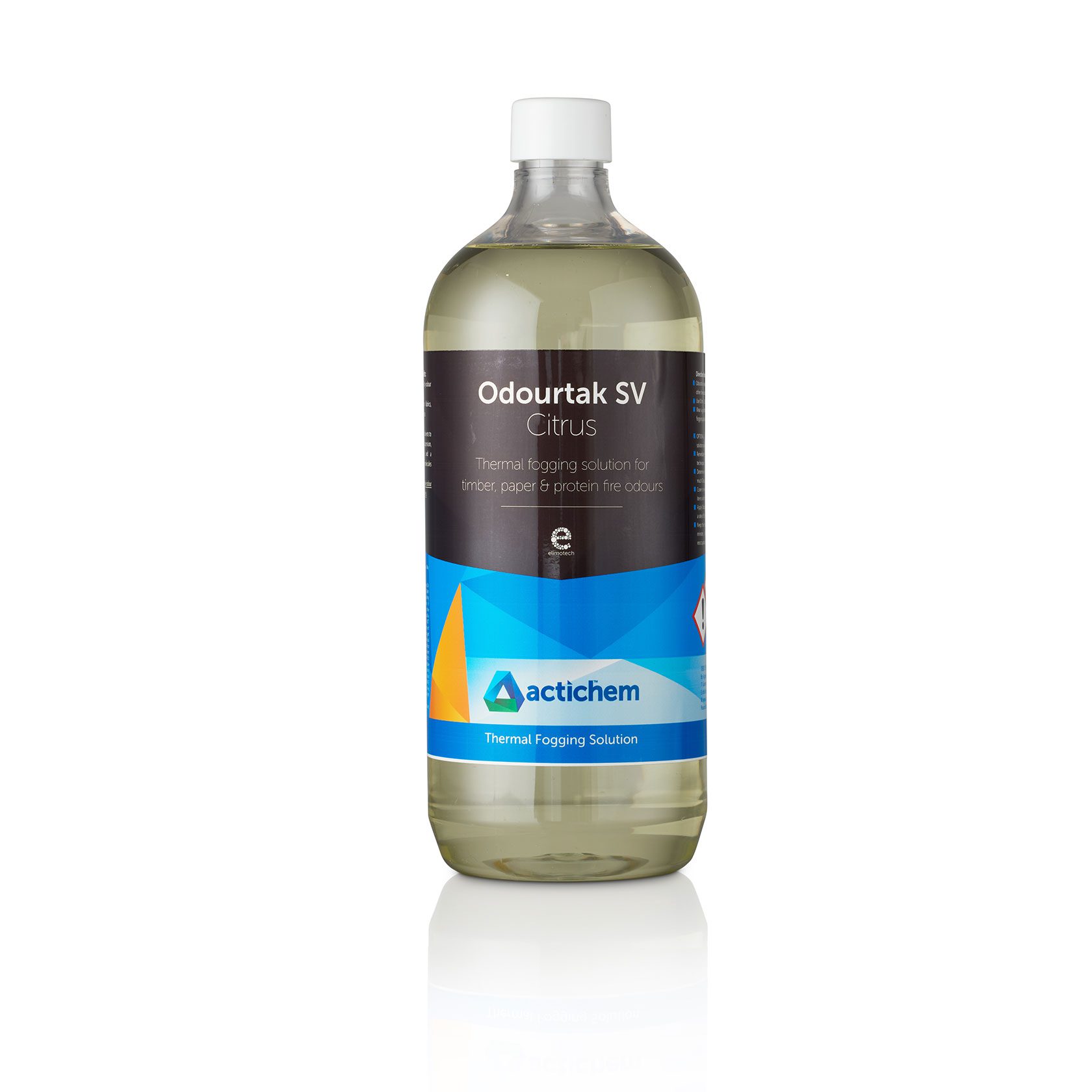Odourtak SV – Citrus is a solvent-based odour control solution engineered for thermal fogging in fire remediation. Formulated with Elimotech chemistry, it neutralises the most stubborn smoke and soot odours at the molecular level. Designed for non-inhabited spaces, it delivers deep penetration into porous materials, making it ideal for attics, sub-floors, stripped-out buildings, and other hard-hit environments after protein, paper, or timber fires.