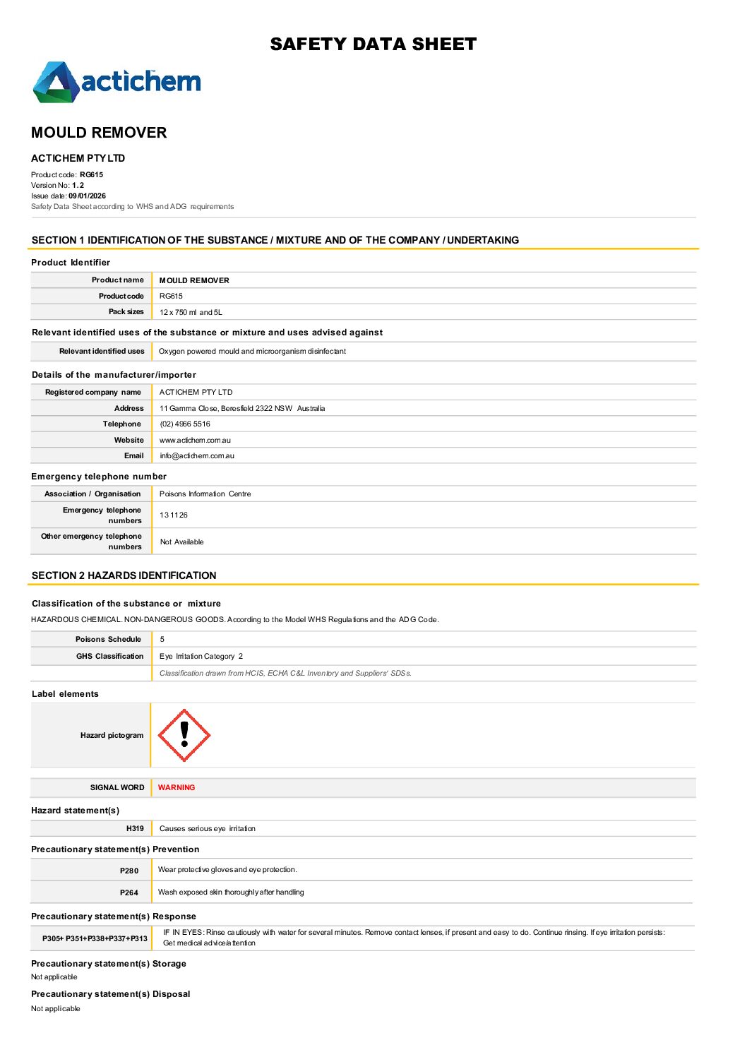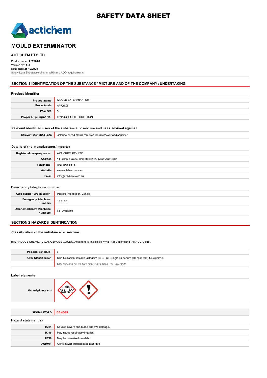 AP726.05 Mould Exterminator | Safety Data Sheet