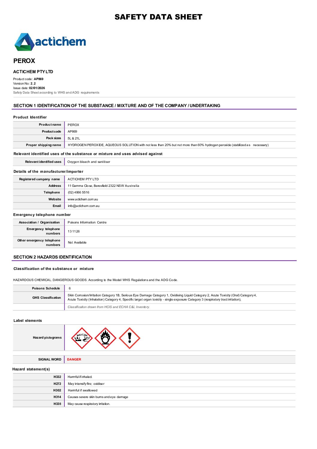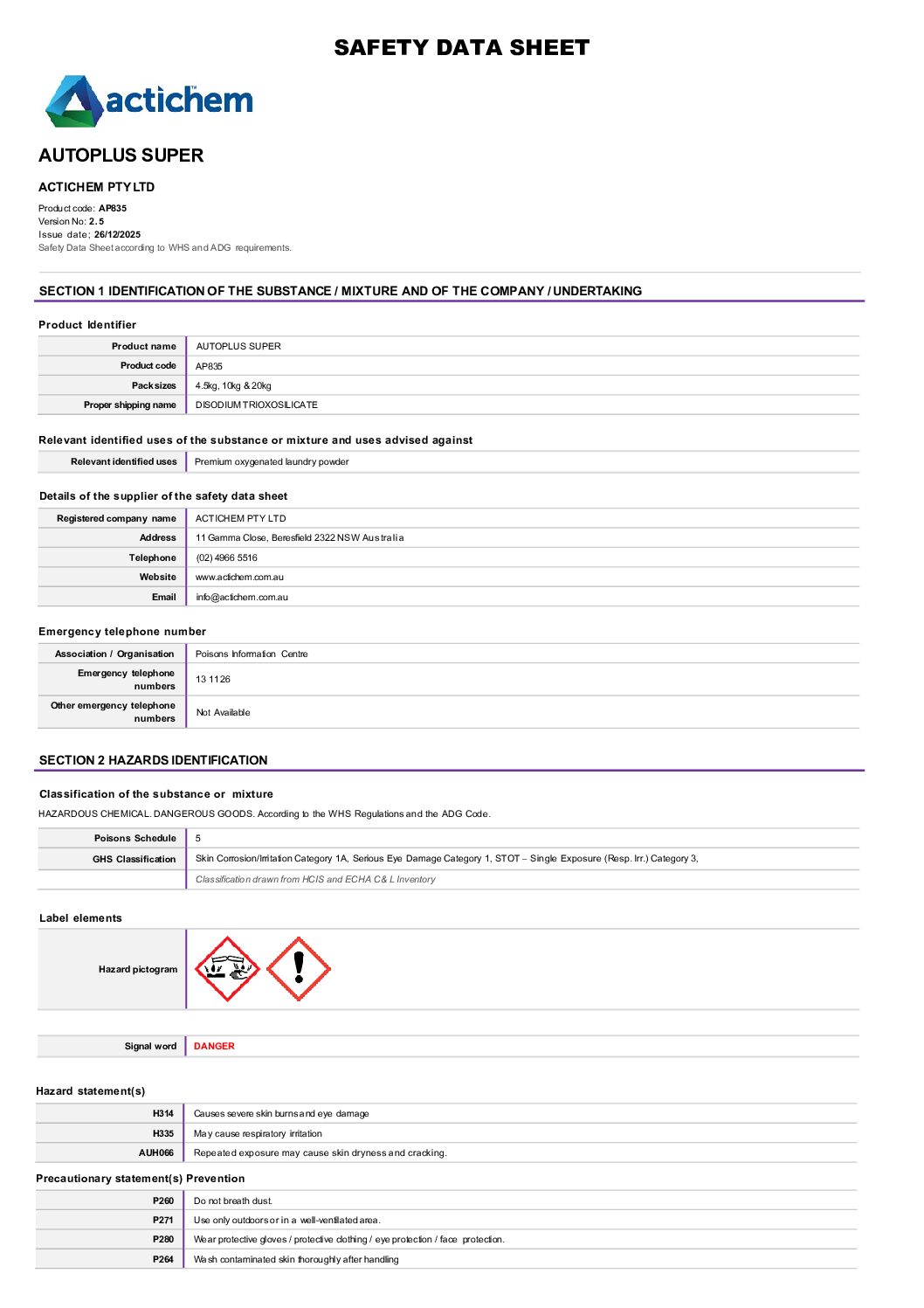 AP861.045 Oxyboost Plus 4.5kg | Safety Data Sheet