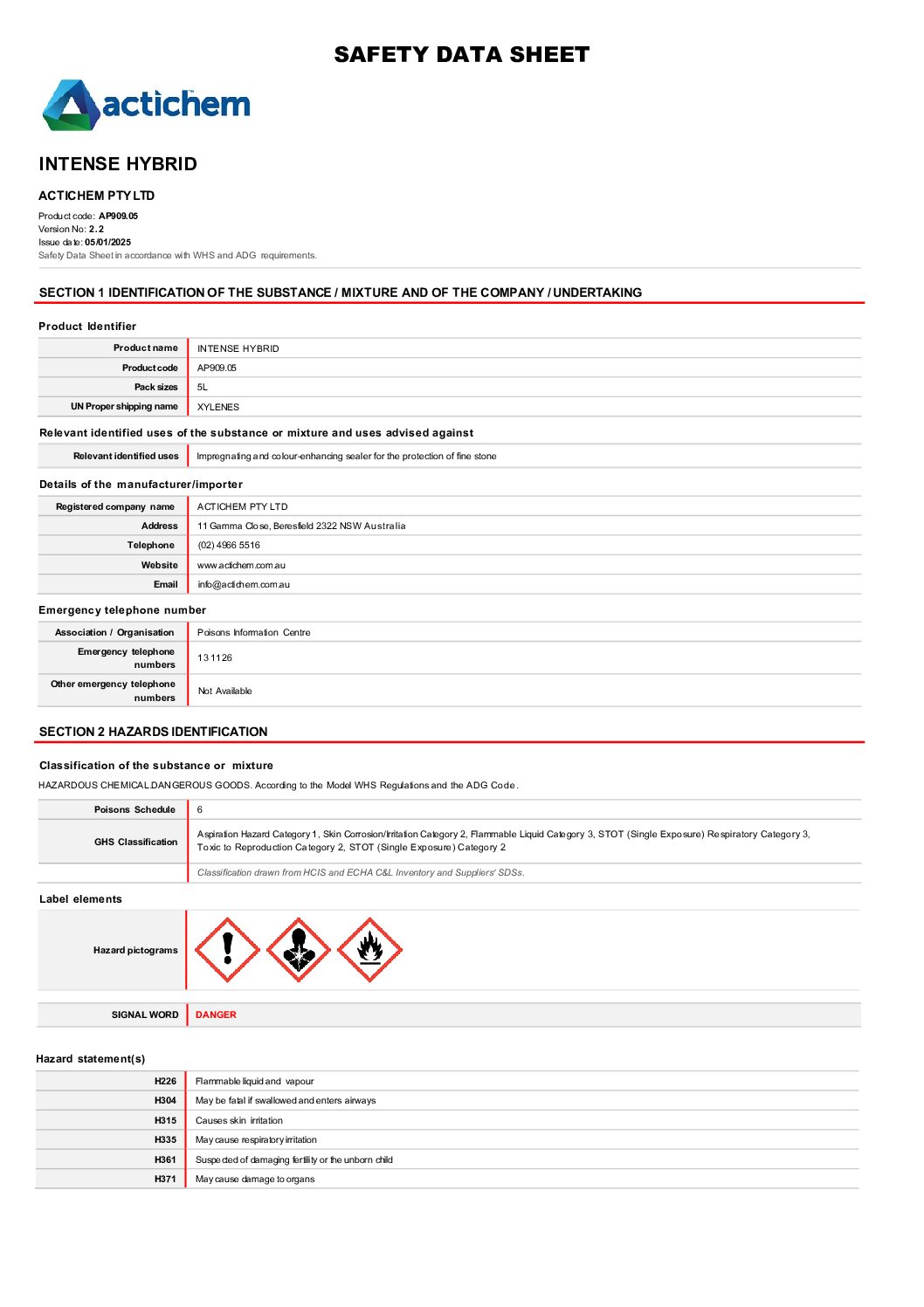 AP909.05 Intense Hybrid | Safety Data Sheet