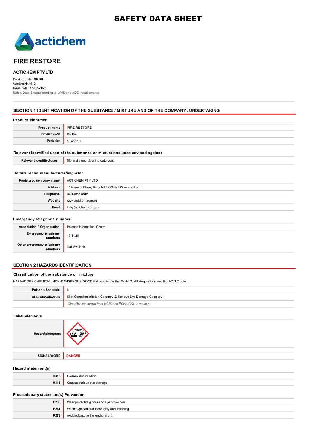 AP159.05 Grout Restore 60 5Lt | Safety Data Sheet
