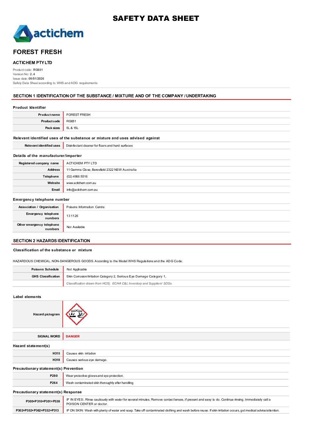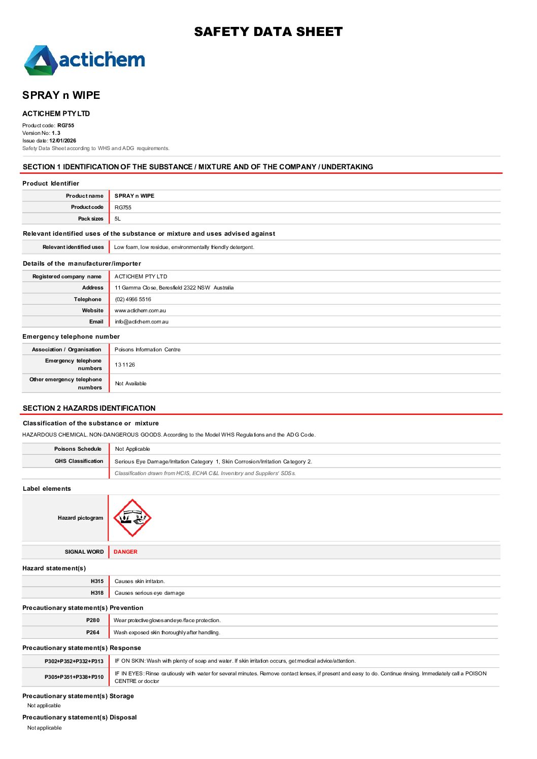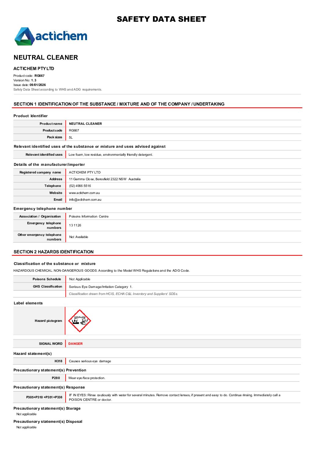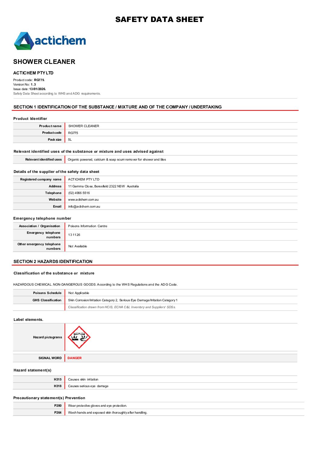 RG710 Bathroom Cleaner | Safety Data Sheet