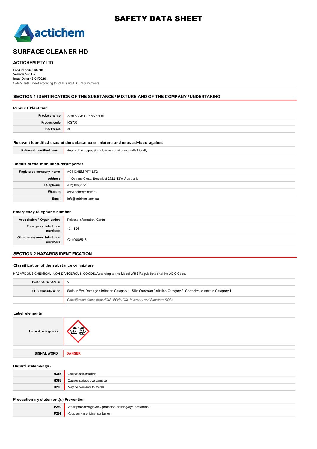 RG704.05 Surface Cleaner HD | Safety Data Sheet