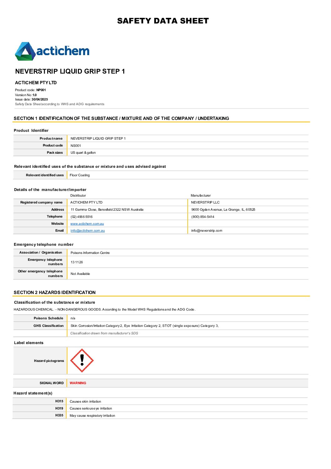NS196 NeverStrip Densi-Prime | Safety Data Sheet