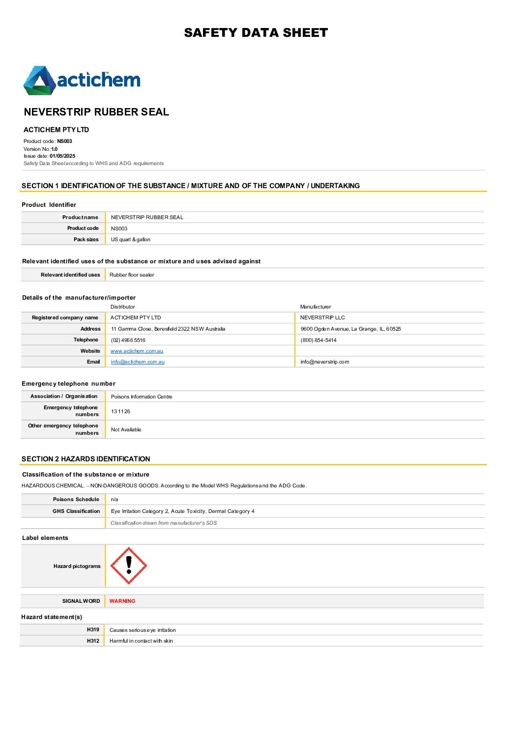 NS187 NeverStrip Rubber Seal | Safety Data Sheet
