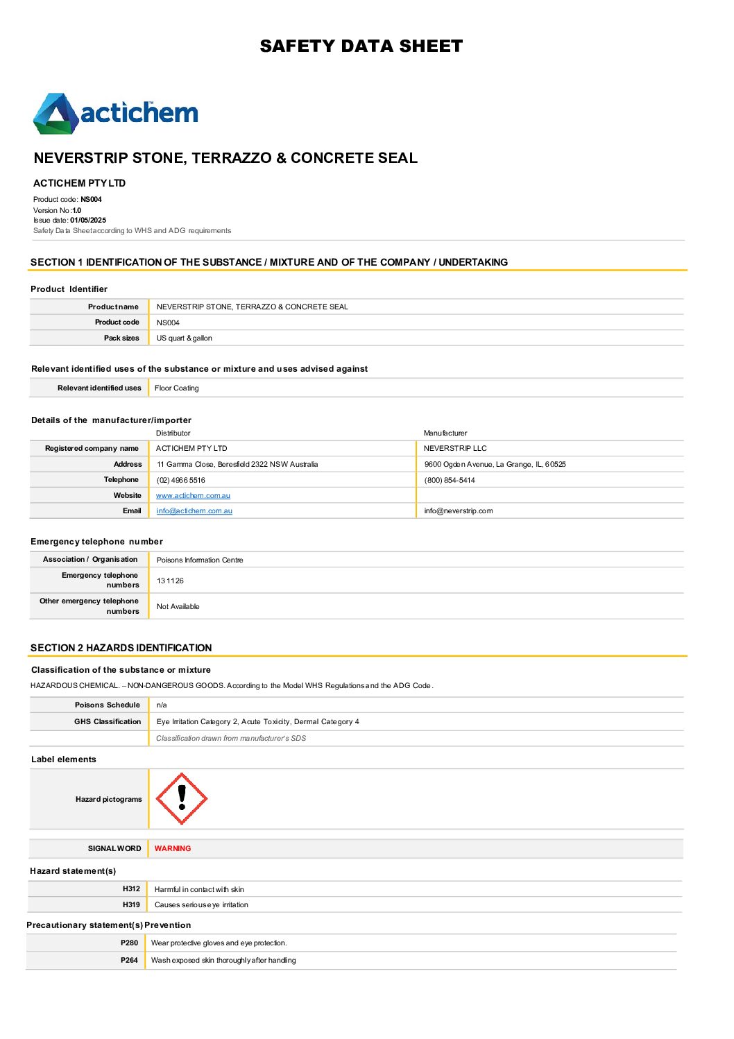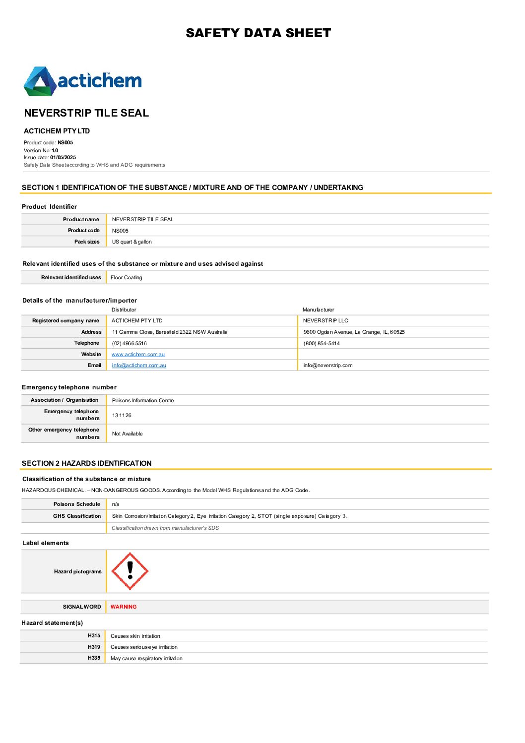 NS162 NeverStrip Tile Seal | Safety Data Sheet