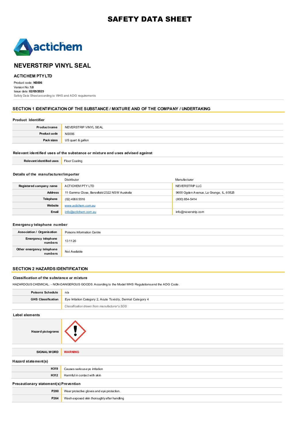 NS166 NeverStrip Vinyl Seal | Safety Data Sheet